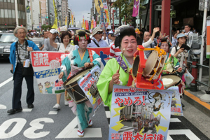チンドン屋を先頭に浅草を大行進/外国人の方も応援