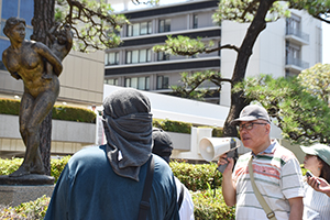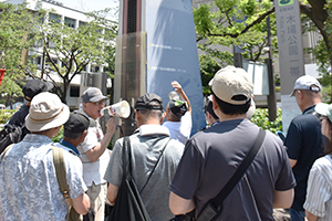 7月13日(日)本部教宣部平和取材「東京大空襲を歩く」に参加しました。1945年、B29爆撃機が20万発もの爆弾を投下。一夜にして、10万もの命が奪われました。そんな歴史と向き合うため、江東区に点在する「空襲の記憶」が刻まれた地を巡りました。