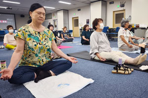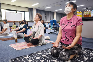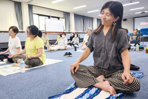 記念講演として足立東分会の濱野会長を講師に「ヨガ教室」を開講。健康的な呼吸法などについて実践で学び、自身の体と向き合うことができました。参加者は「はぁ良かった」と吐息交じりにリラックス。またやりたいとの声もあり、関心の高さが伺えました。