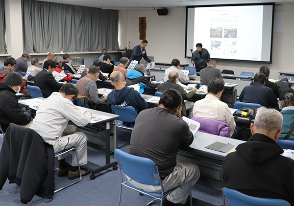 11月23日(日)足立支部会館にて「屋根応急修理施工研修会」を実施。近年多発する自然災害に対し「研修して備える・地域の家の修理は東京土建へ」を指針に開催したこの研修に、各分会のレスキュー隊隊長、土建本部、足立区災害対策課など、総勢42人が参加しました。 |